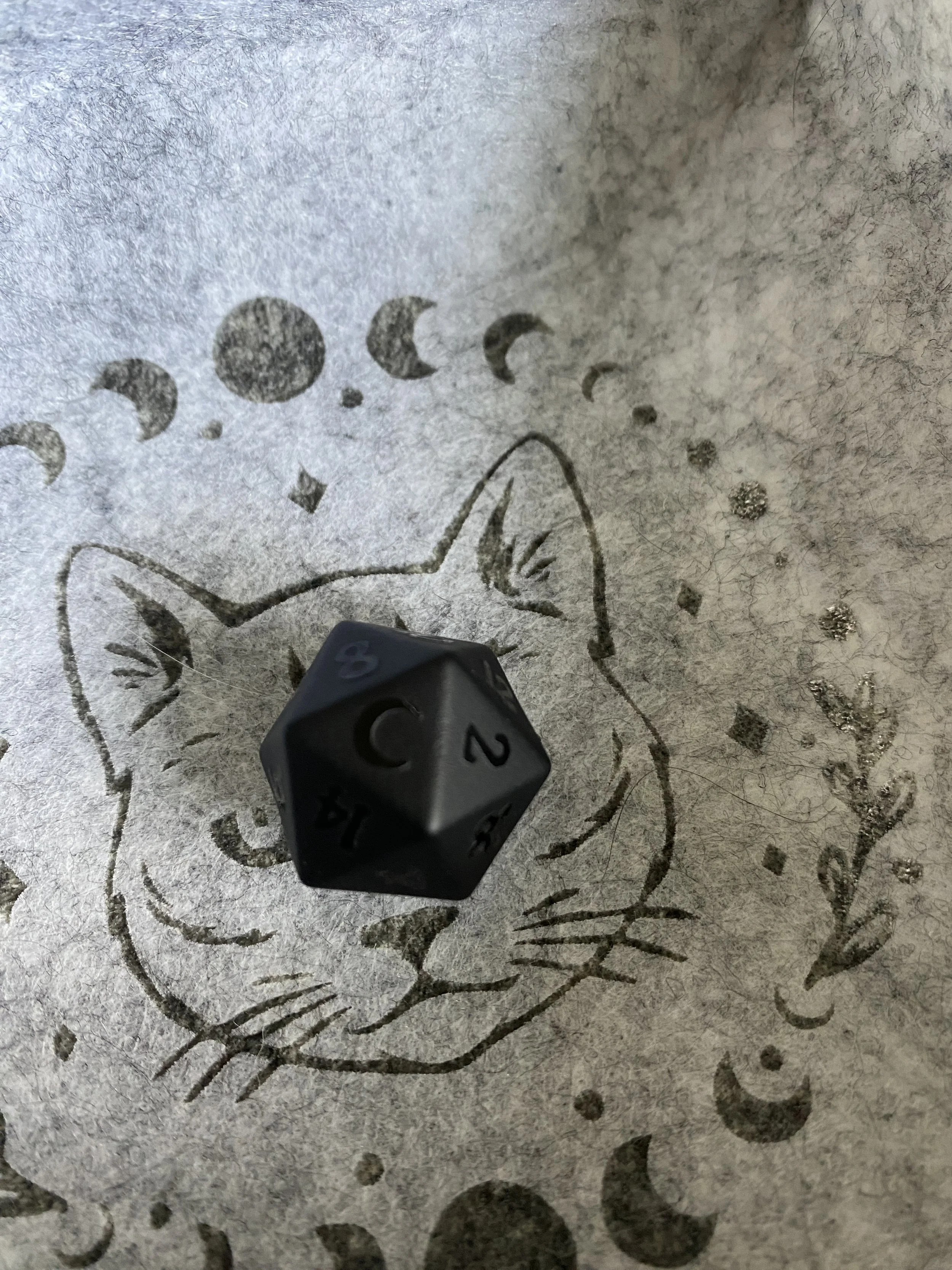 Die and dice tray from my brother, whom I’ve also gotten obsessed with D&D! The 20 on this d20 is a crescent moon; how cute is that?